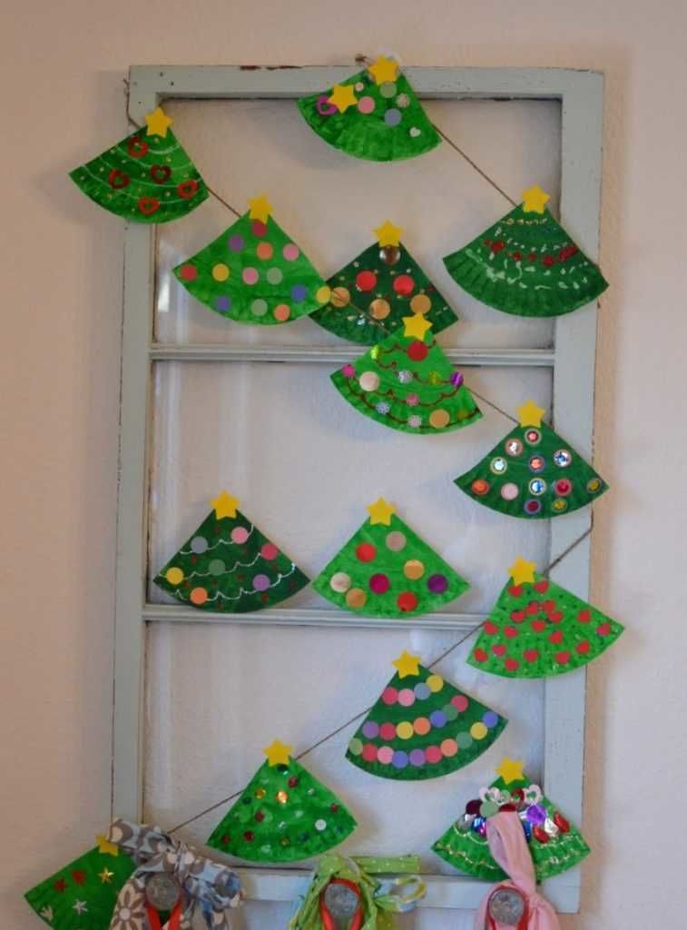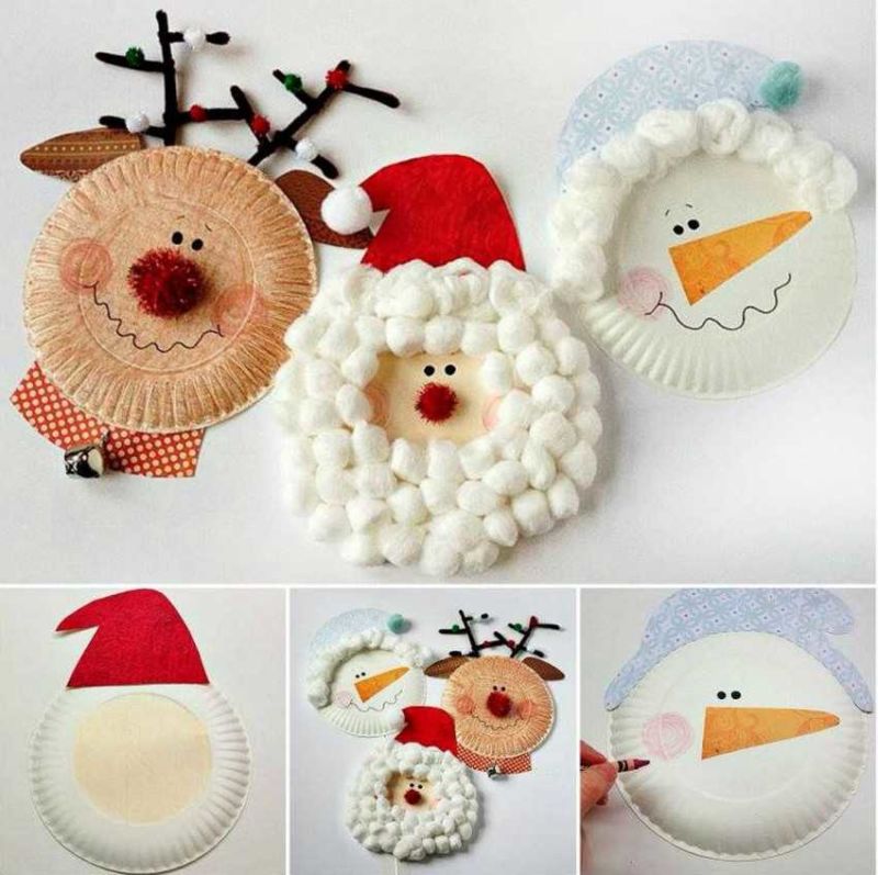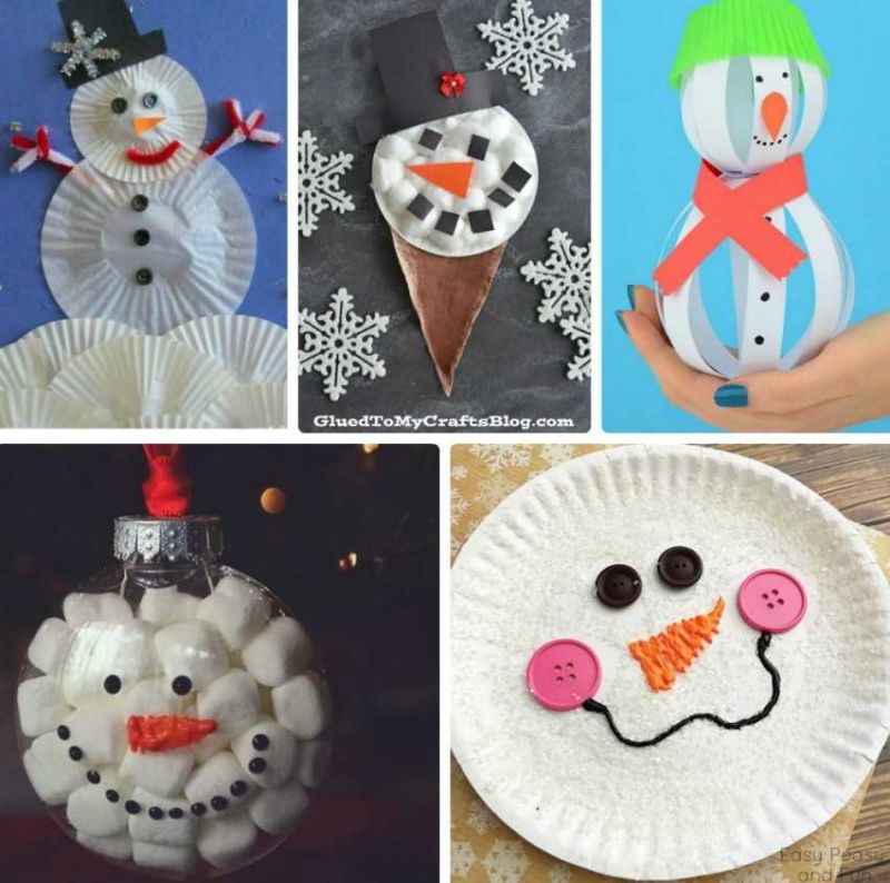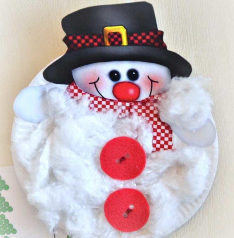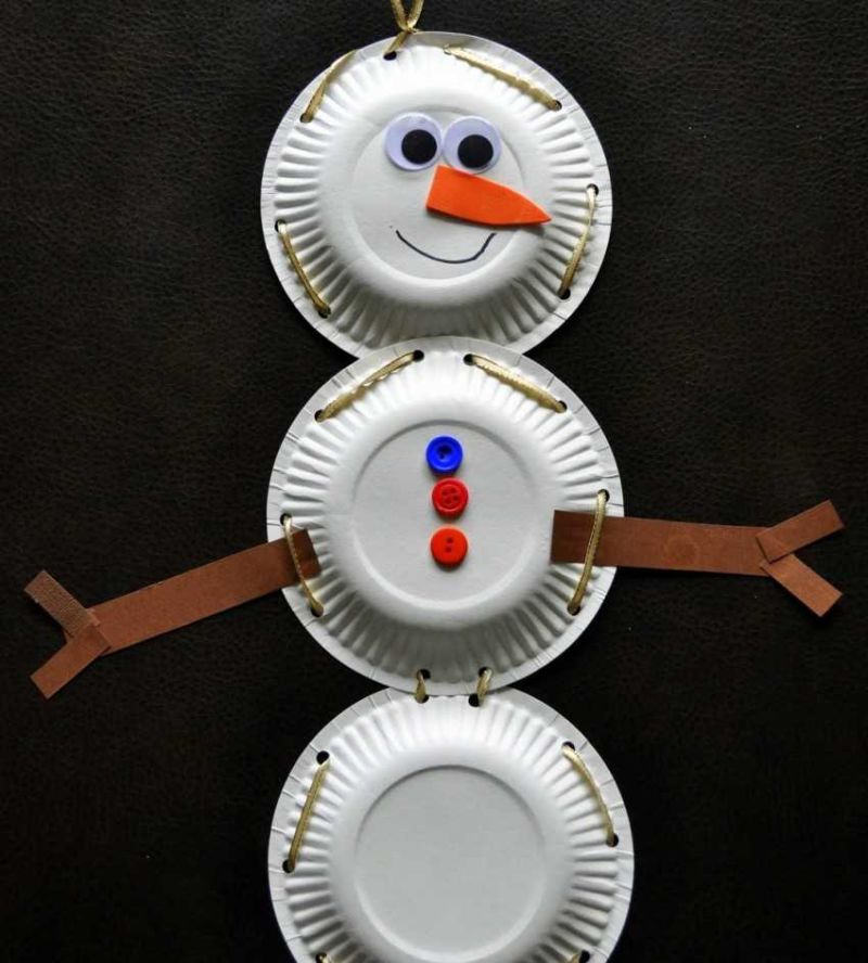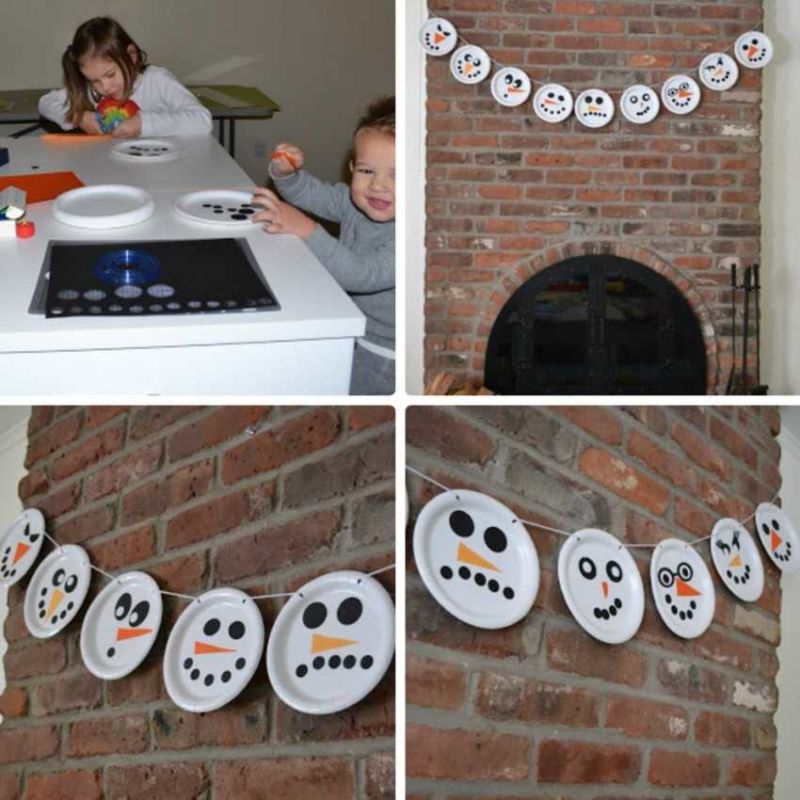 Първо подгответе снежните човеци: залепете чифт хартиени чинии (главата е по-малка от торса). Нарисувайте смешно лице, украсете го с шал, направете копчета. Прикрепете снежните човеци към панделката, като оставите краищата им от двете страни, за да улесните връзването на гирлянда.