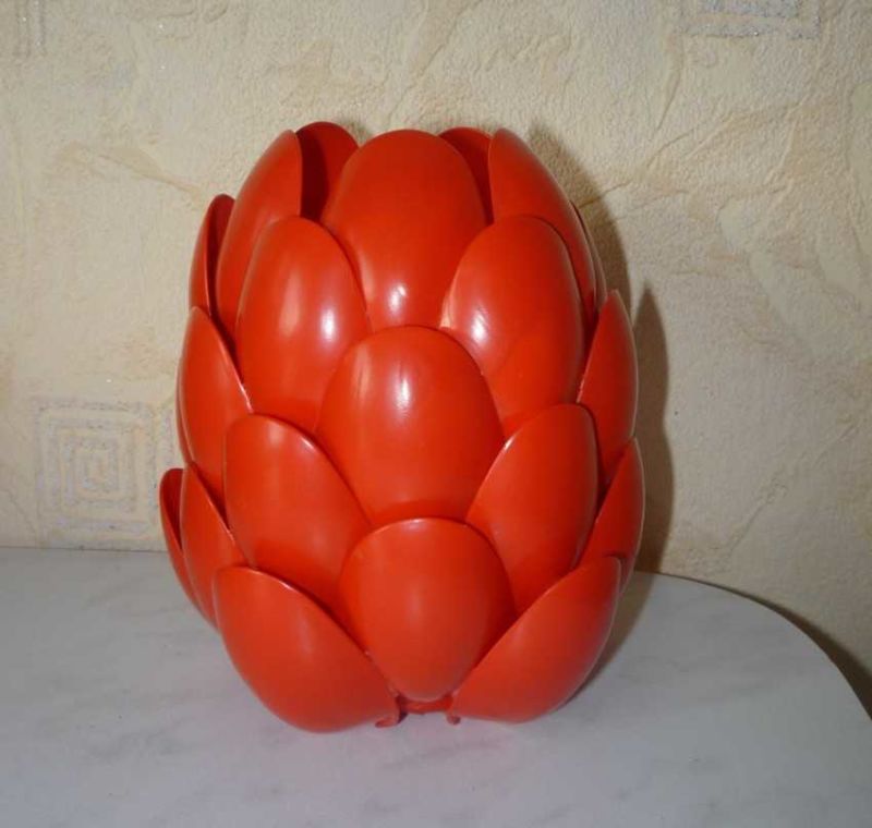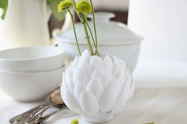 Във всеки интериор вазата, изработена от пластмасови лъжици за еднократна употреба, ще намери подходящо място за себе си.