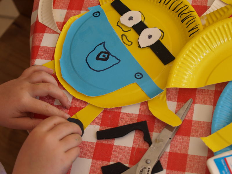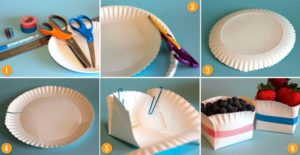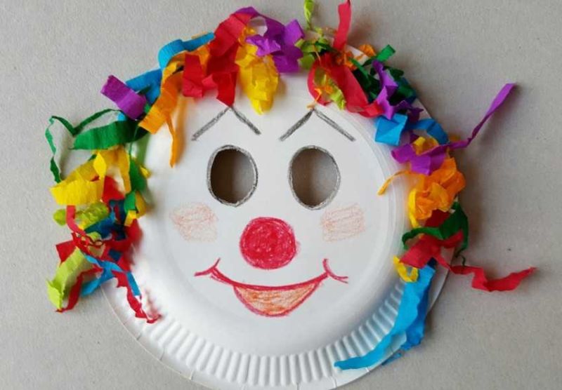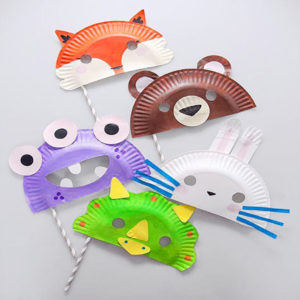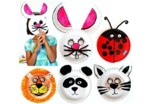 Хартиените чинии са идеални за изработване на маски. Подходящи са за празник, матине, театрално представление или фотосесия. Използват се продукти в бял цвят и боя.