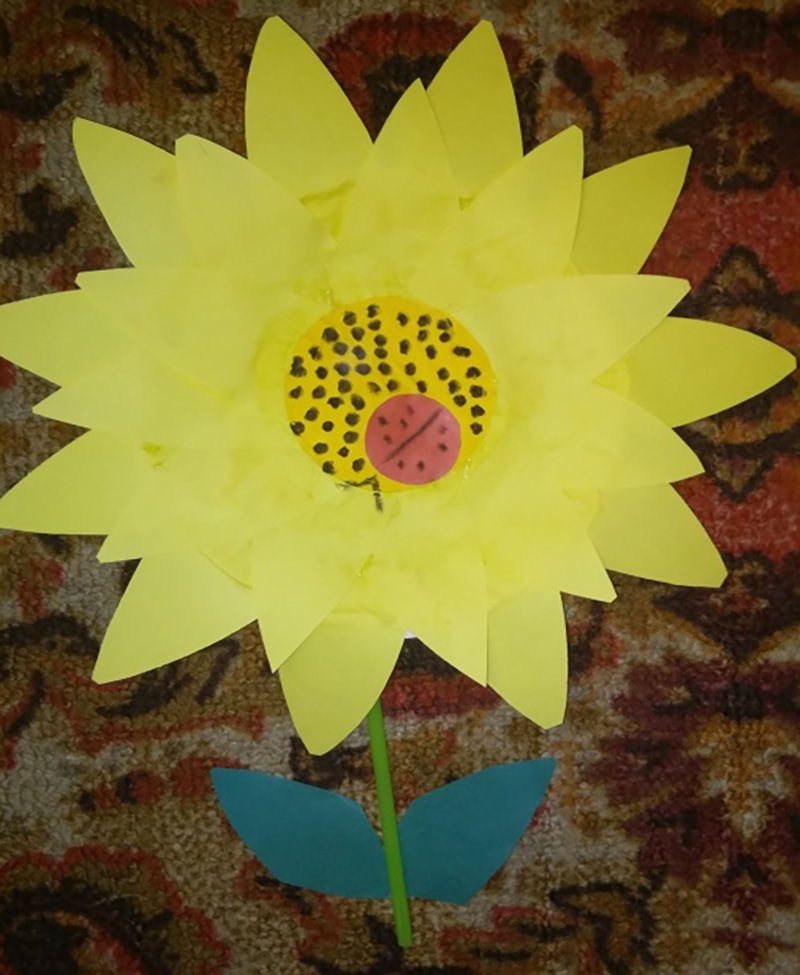 Тези ярки, слънчеви цветя с вкусните си плодове са любими не само на децата, но и на възрастните. Ето защо такъв занаят се прави от дете със страст и специален подем.