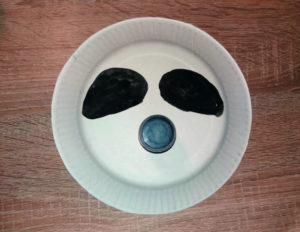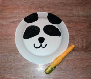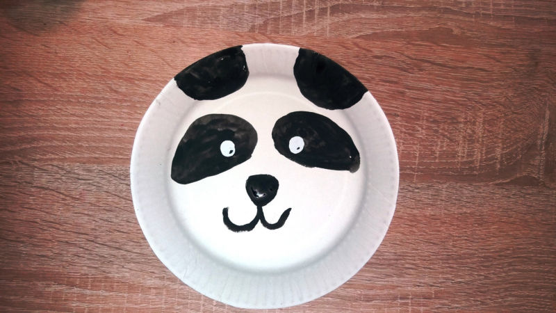 - Изрежете два малки кръга от черна хартия и залепете ушите на пандата.