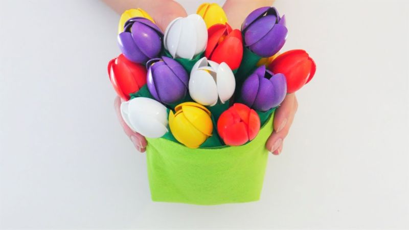 Лалетата, изработени от съдове за еднократна употреба, ще бъдат прекрасна украса за Великденските празници.