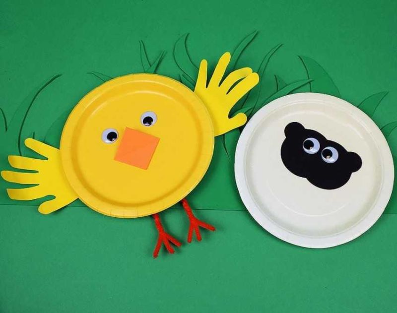 За децата можете да приготвите оригинални сувенири - занаяти от съдове за еднократна употреба. Използвайте две хартиени чинии с малко по-различни размери и гвашова боя.