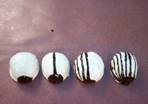- Изрисувайте повърхността на черупката с гваш или акрилна боя в едноцветен черен или бял цвят, като изрисувате всички гънки, така че всички области да бъдат изрисувани. Оставете продукта да изсъхне.