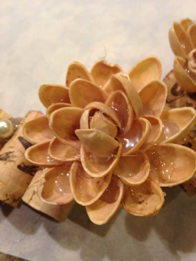 - След това с горещо лепило залепете новите черупки към пъпката, като нанесете лепило върху основата, а горната част е свободна.