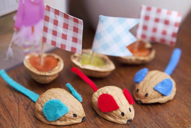 За деца на тригодишна възраст могат да се създават изделия от орехи, децата ще ги разглеждат и ще си играят с тях, а родителите ще включват децата в изработването на играчки и ще насърчават желанието им да ги правят.