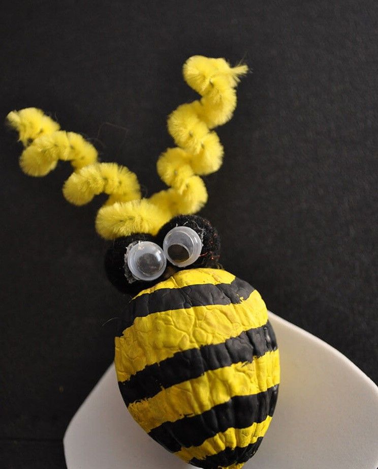 Направете осем огънати крачета и ги закрепете от вътрешната страна на черупката. Нос и очи по ваш избор.