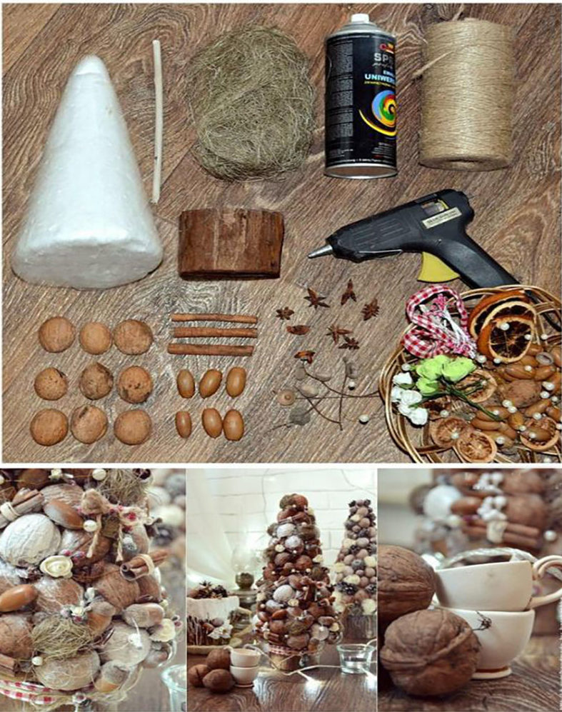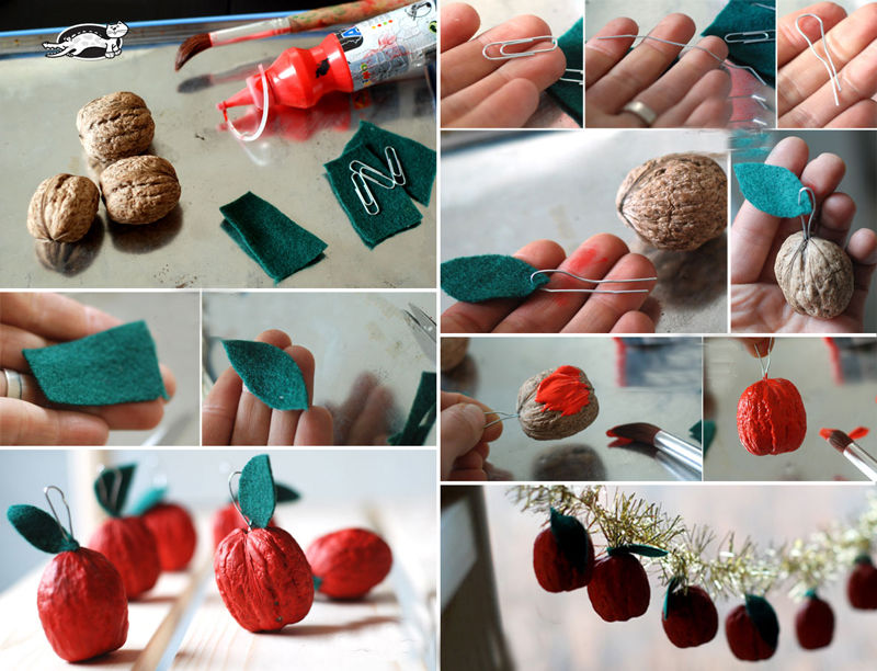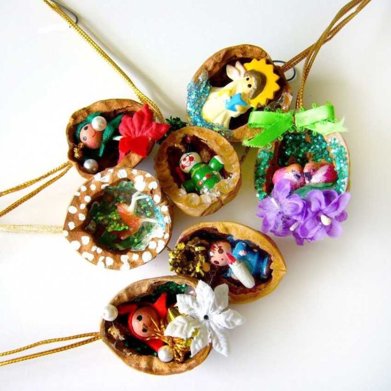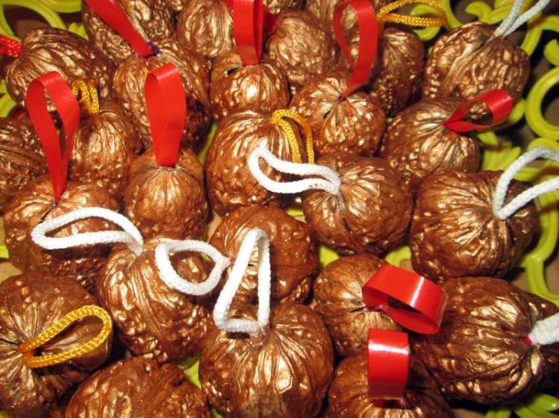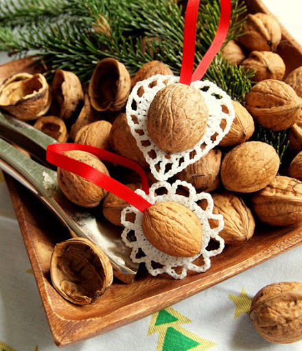 Занаятите с черупки от ядки са чудесна празнична украса.