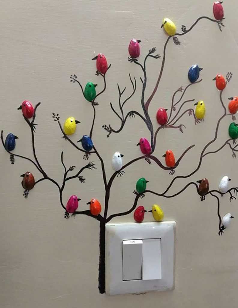 Сега оформете очите и човките им в жълто. Можете да ги поставите на клон на дърво.