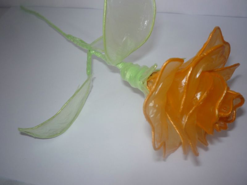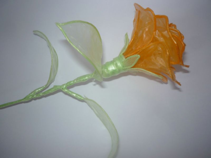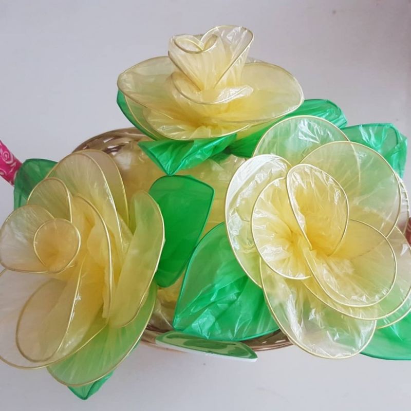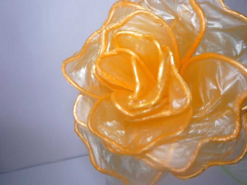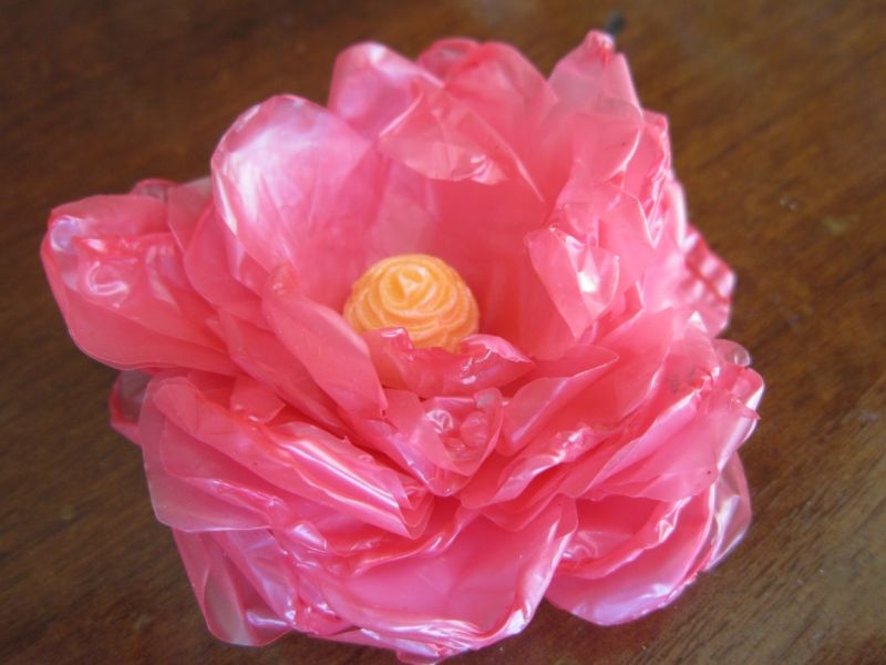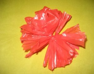 Един от най-лесните занаяти с пластмасови торбички е изработката на роза. Розовите и червените найлонови торбички също са подходящи, но всичко зависи от вашето въображение.