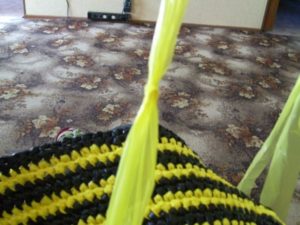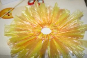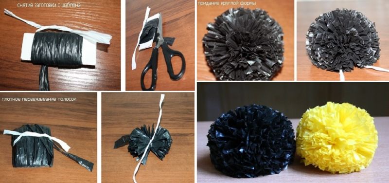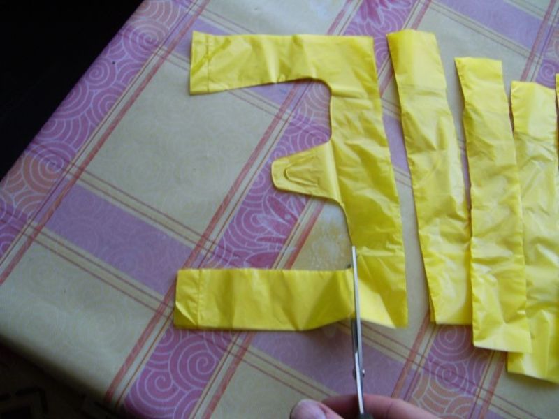 Колкото по-разнообразна е палитрата от чанти, толкова по-интересна ще бъде картината. Изрежете дълги ленти от торбичките и се заемете с работата.