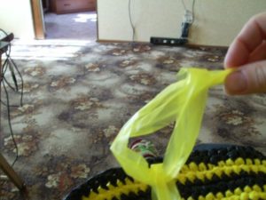 Детето ви може да направи това забавно занимание дори самостоятелно. Вземете му торбички за боклук, пластилин и конци.