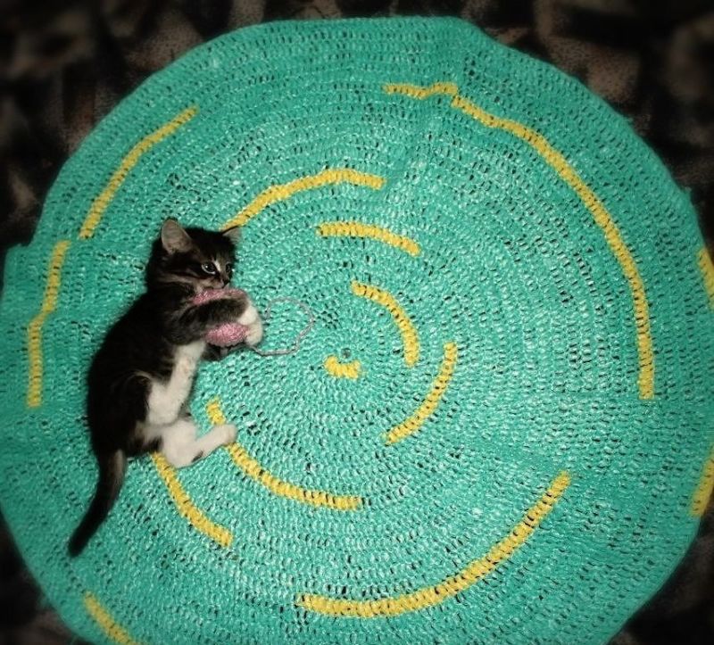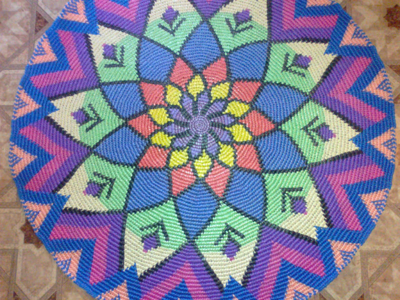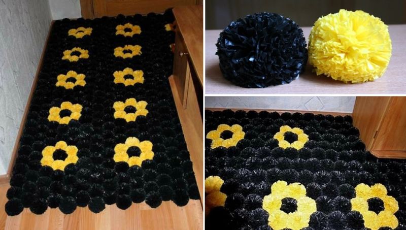 Друг начин да направите необичаен килим е с познатите полиетиленови помпони!