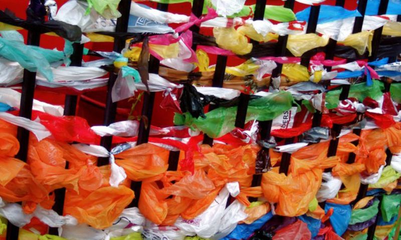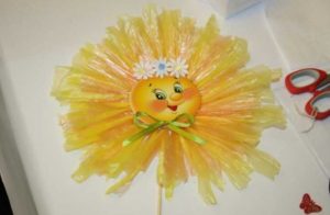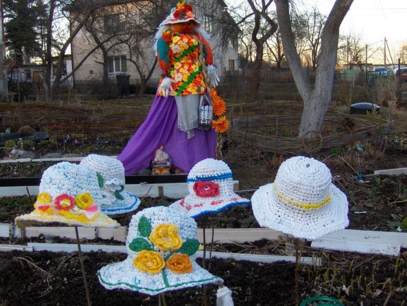 От торбичките могат да се изработят красиви декорации за градината и зеленчуковата градина. Полиетиленовите цветя по ръба на лехата ще изглеждат необичайно.