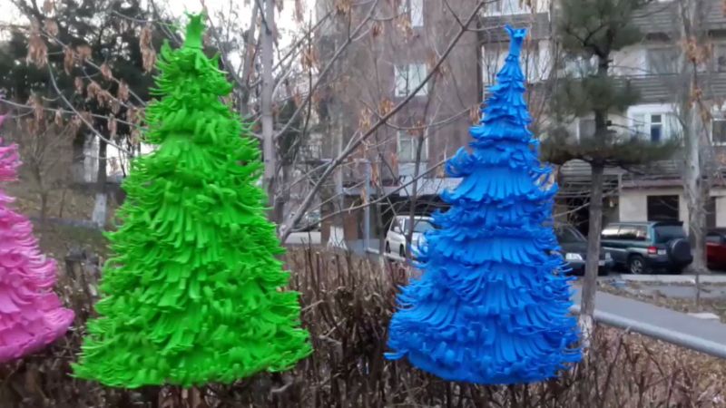 Можете да поставите такова красиво дърво на новогодишната маса. Не заема много място и изглежда много красиво.