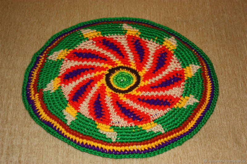 Такова изделие е лесно за плетене на една кука. Можете да го направите в един цвят или дори с шарка. За да направите това, намерете в интернет скица за плетене на една кука и следвайте модела.