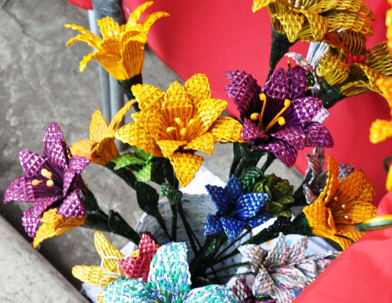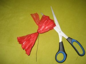 За розата ще са ни необходими ярко оцветени торбички, ножици и тел за рамката.