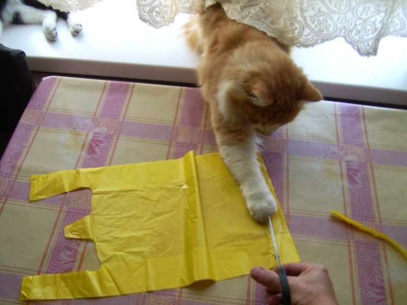Подгответе си предварително много найлонови торбички. Колкото повече полиетилен използвате, толкова по-пухкава ще бъде играчката.