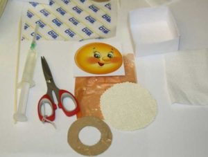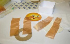 - Изрежете основата от картона - два кухи вътрешни кръга с различна големина. Те ще се използват за главата, краката и тялото.