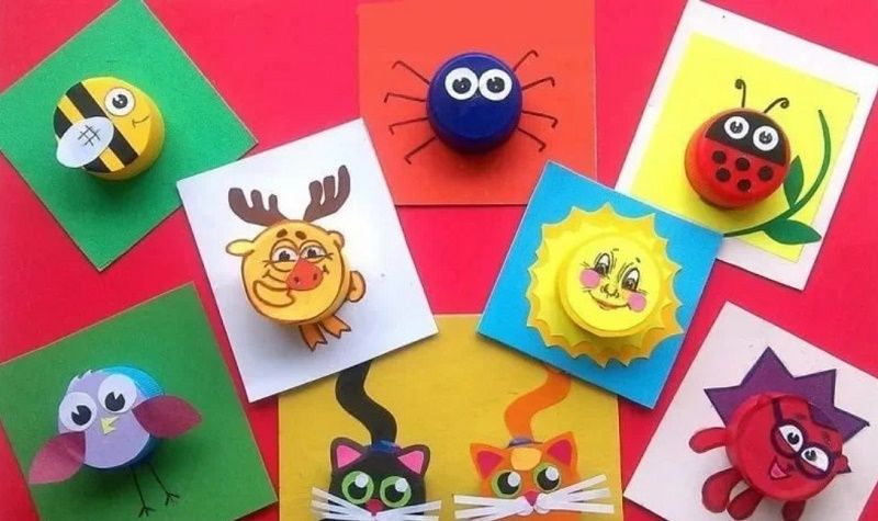 С помощта на капачките можете да направите роботи, животни, човечета, насекоми, феи, анимационни и приказни герои и много различни същества. Тези фигурки от капачките няма да оставят нито едно дете безразлично.