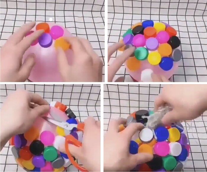 Не забравяйте, че не е задължително да използвате само капачки за бутилки. Има много пластмасови капачки с различни размери, които ще ви помогнат да осъществите всичките си фантазии.