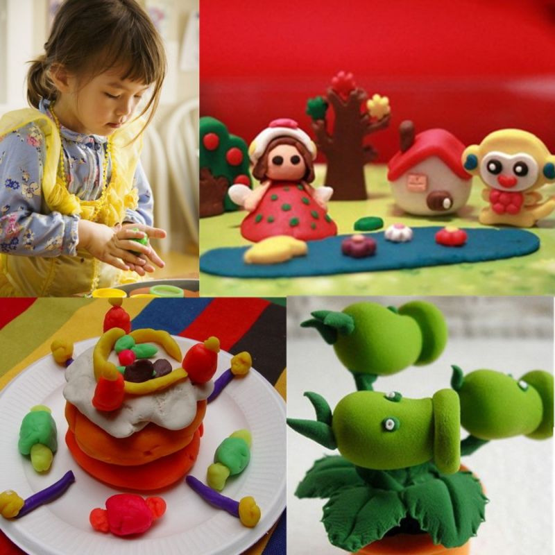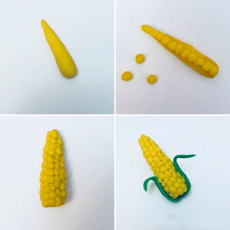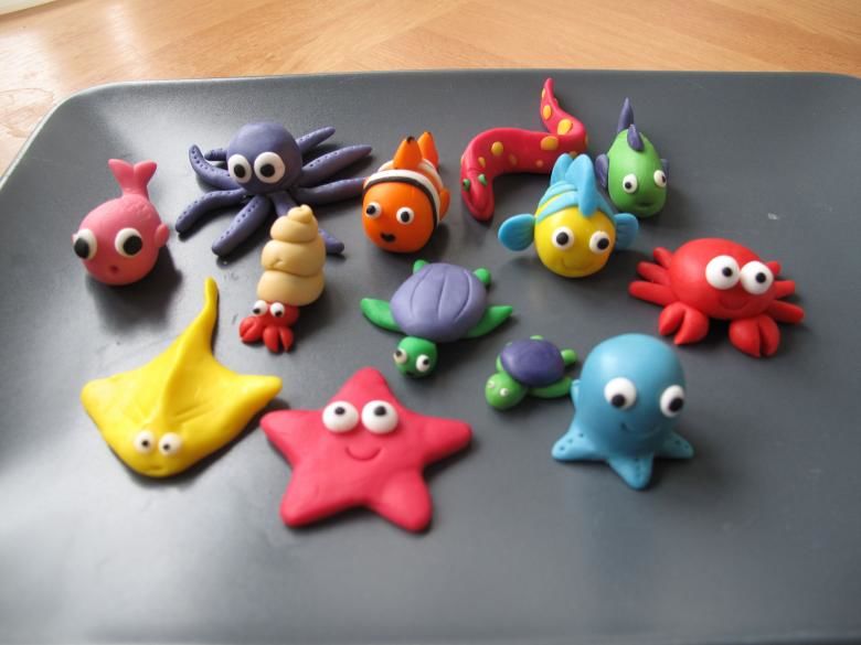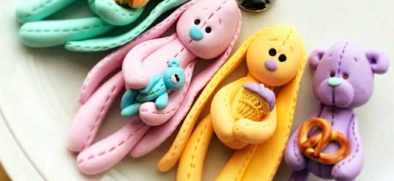 Тъй като парчетата не се слепват добре, по-добре е да се извае цялото парче и да се отделят частите, много весели кръгли анимационни герои: бухал, заек, таралеж, прасе, лос, овца. Плодовете и зеленчуците също ще се получат добре, а ярките цветове ще зарадват децата.
