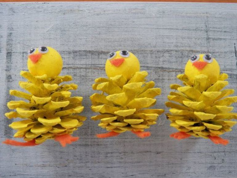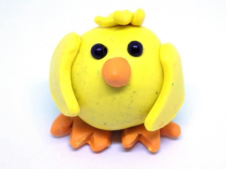 - Главата е направена от жълт пластилин, очите и човката - по желание.