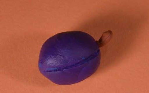 - Оформете сливите от лилав пластилин в овална форма.