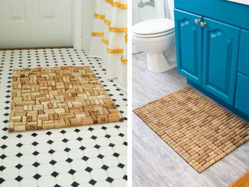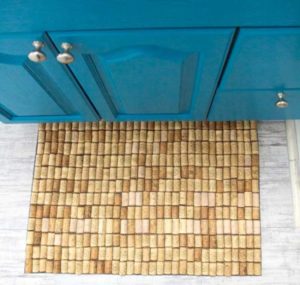 Ударопоглъщащите и топлоизолиращите свойства на суровината, както и нейната устойчивост на влага са търсени в банята. За да се създаде подложка, корковите тапи се разрязват на две дължини и се залепват върху гумирана основа или се поставят вертикално една до друга в тава със стени.