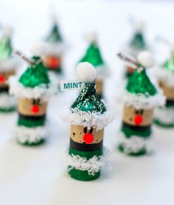 Украсете празненството с пръчици за канапе с ромбове, триъгълници и лентички върху тях. Гостите със сигурност ще останат възхитени от тази аранжировка, а ароматните елхички в миниконтейнери на масата няма да оставят никого безразличен.