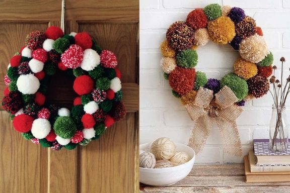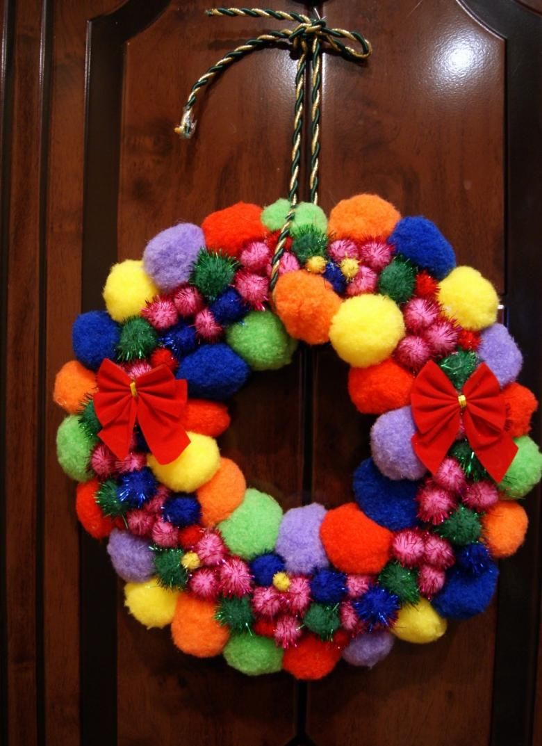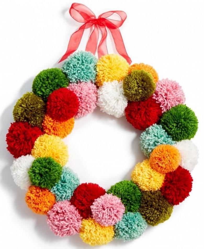 Първата е да се сглоби коледна елха от помпони:
