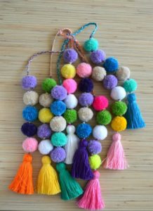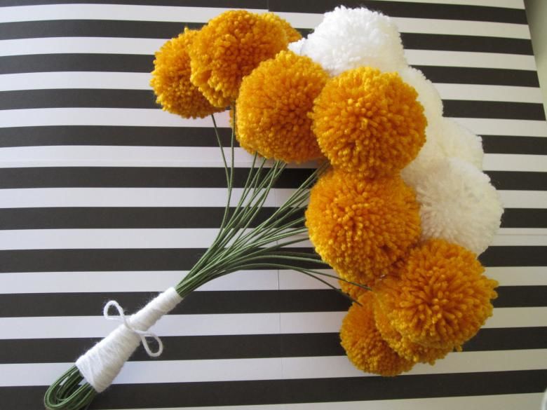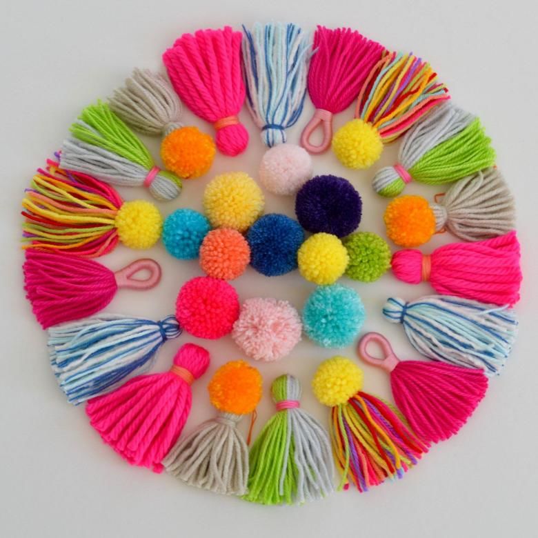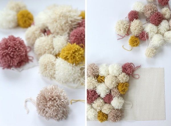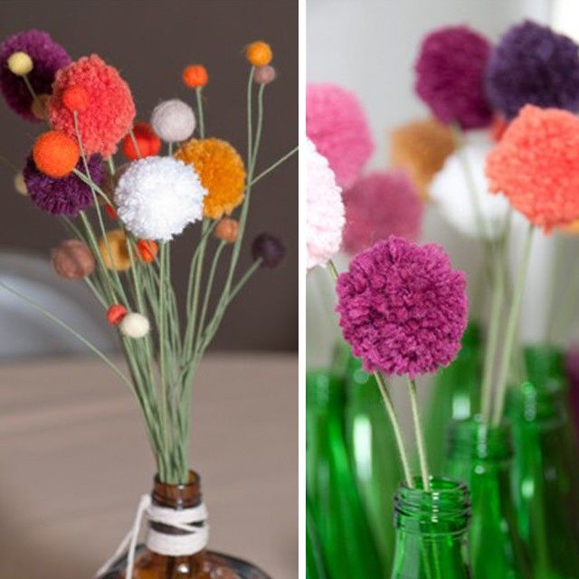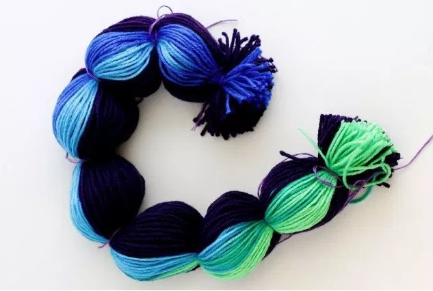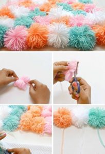 - Направете цветни помпони от прежда.