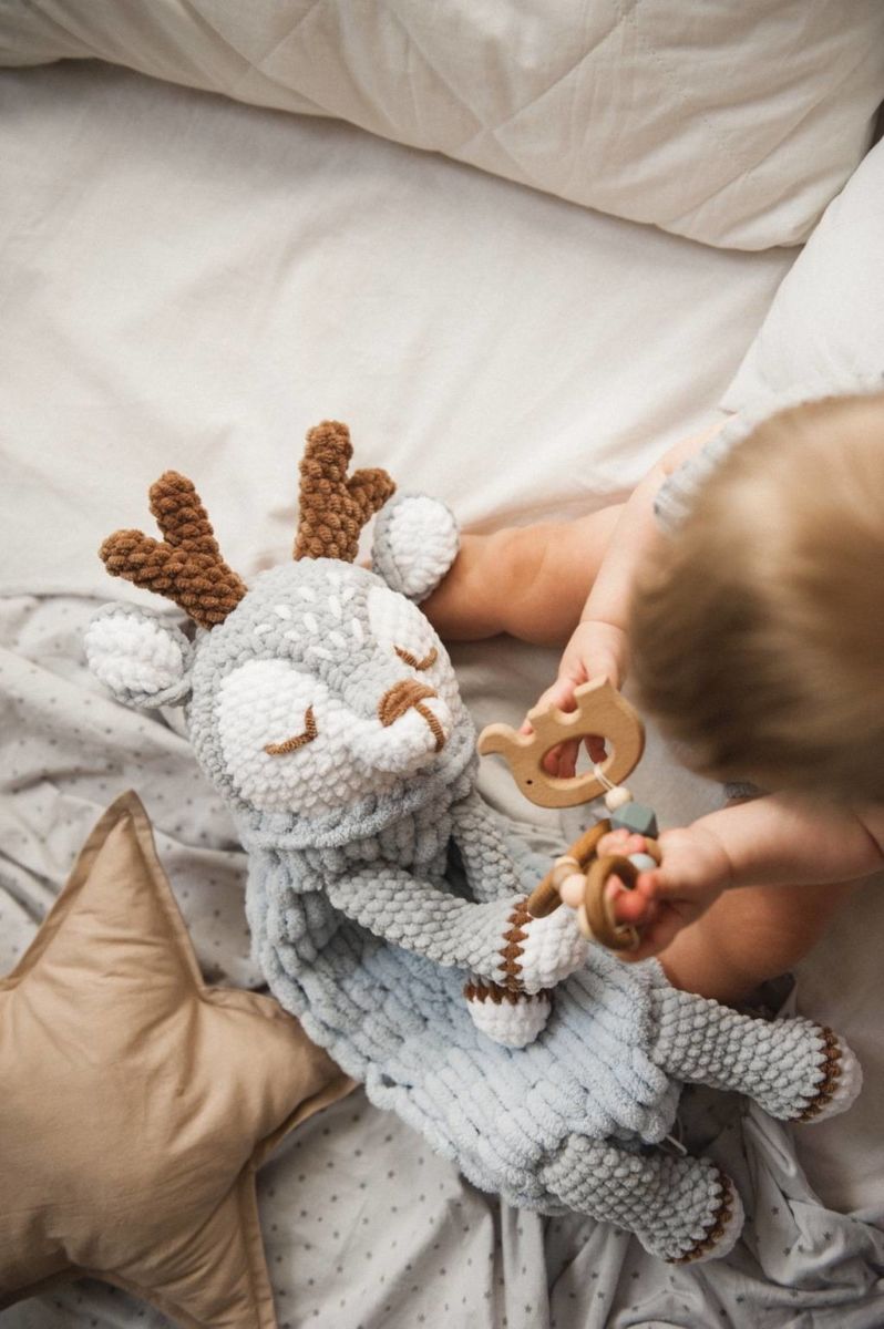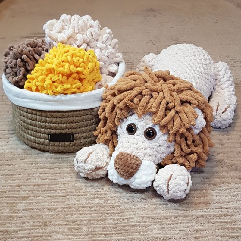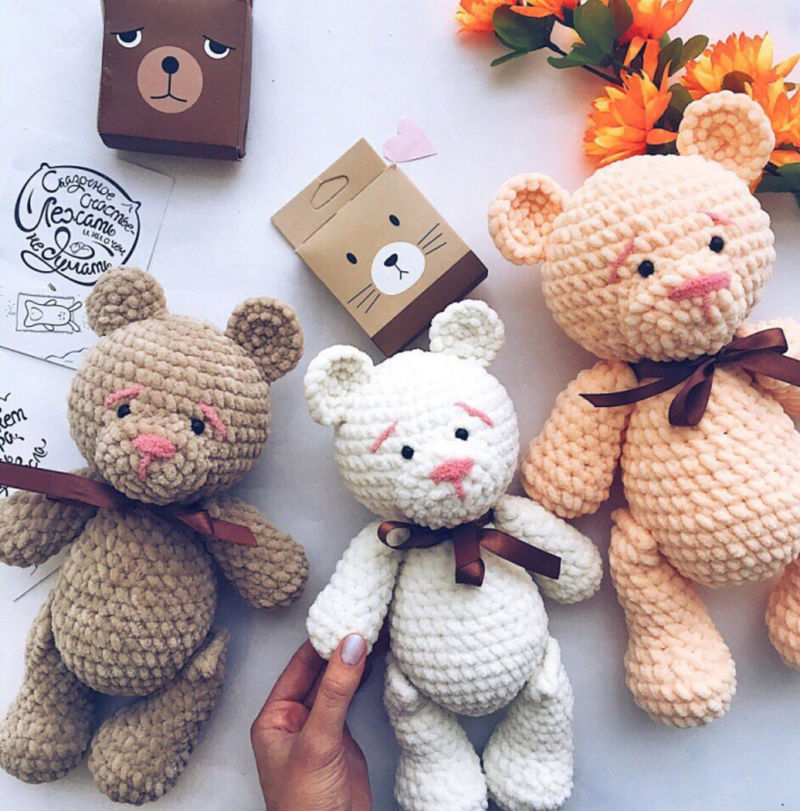 Когато всички части на тялото са изплетени, те се пълнят със синтетични материали и се зашиват заедно. Плетенето на играчки с тази прежда е удоволствие, тъй като тя е пухкава и не отнема много време за плетене.