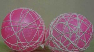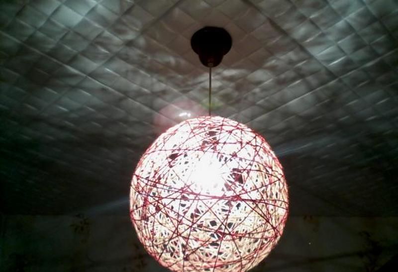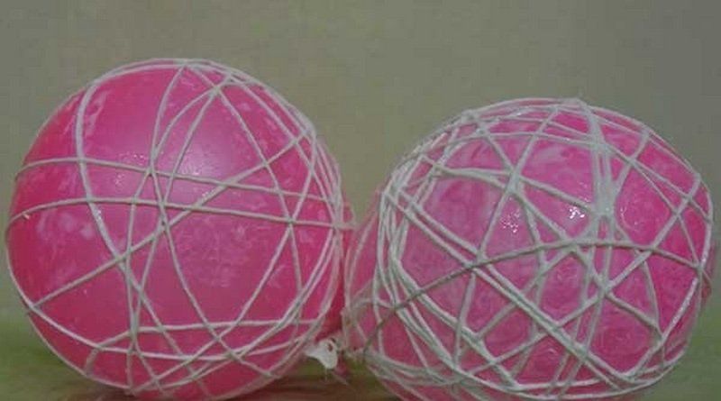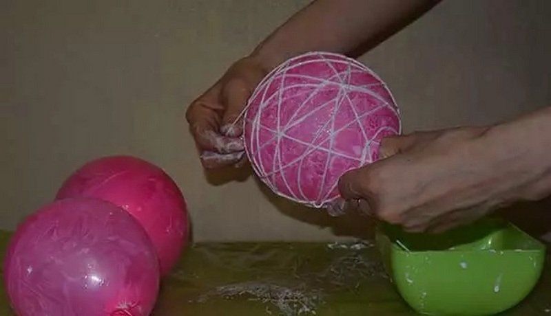 - Увийте подготвената прежда около цялата повърхност на балона, но се уверете, че има пролуки във формата. В противен случай светлината няма да премине през преждата.