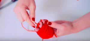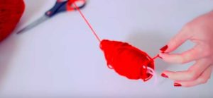 - Зашийте в средата на навития помпон, така че да можете да огънете конеца наполовина.