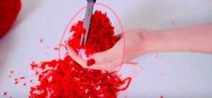 - Залепете помпоните върху конуса, като започнете от дъното.