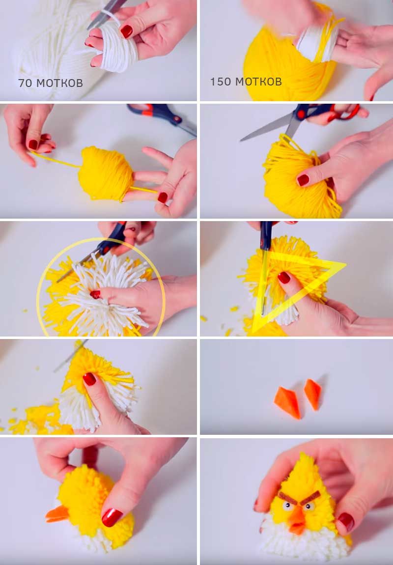 Ако не искате да плетете играчка, можете да я направите от помпони. Пухкавата Alize е подходяща за приготвянето им.