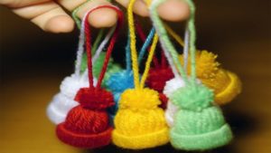- плетете малки шапки за украса на коледната елха;