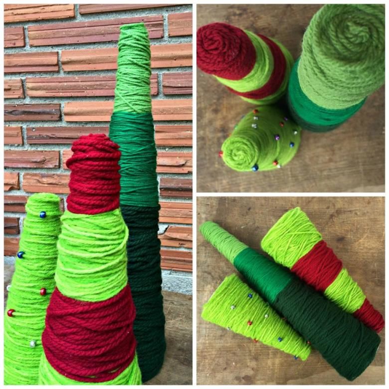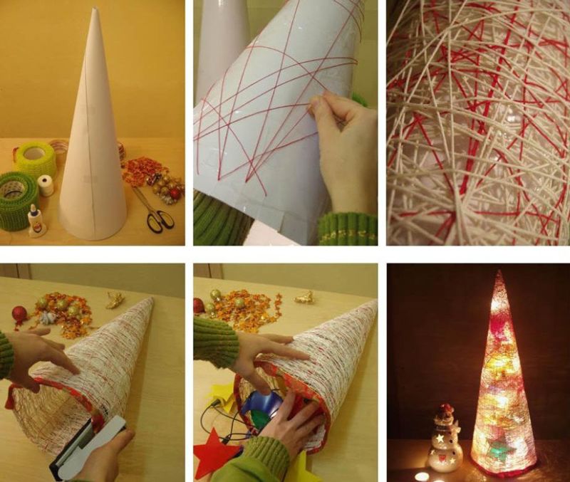 - увийте зелена прежда около конус, за да си направите домашна коледна елха.