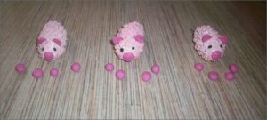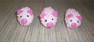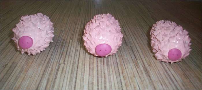 Всеки конус е подходящ за забавен занаят с прасенце. Необходими материали: пластелин, лепило, розов гваш, четка, плоско копче, 2 мъниста: