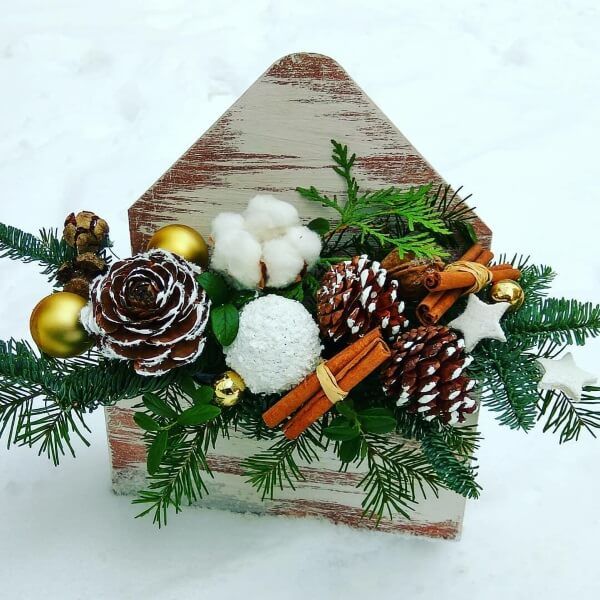 Създаването на празнична украса за интериора ще помогне за изработването на изделия от шишарки, които се съчетават отлично със сезонни декорации: мишлета, коледни украшения, свещи. Необходимо е търпение и творчество, за да се създаде приказно настроение.