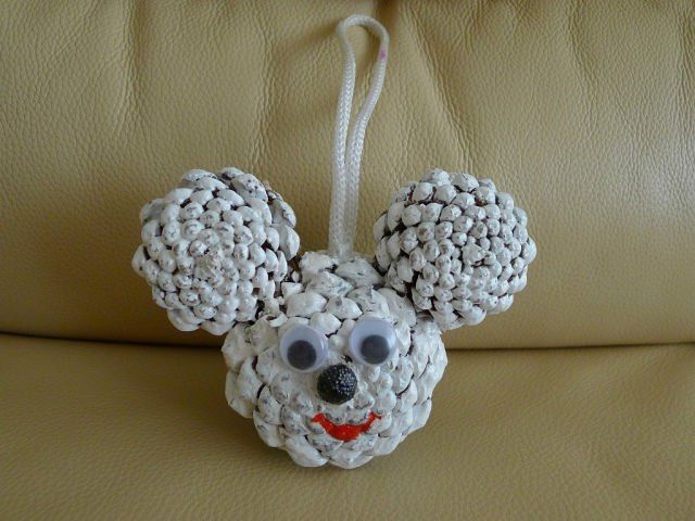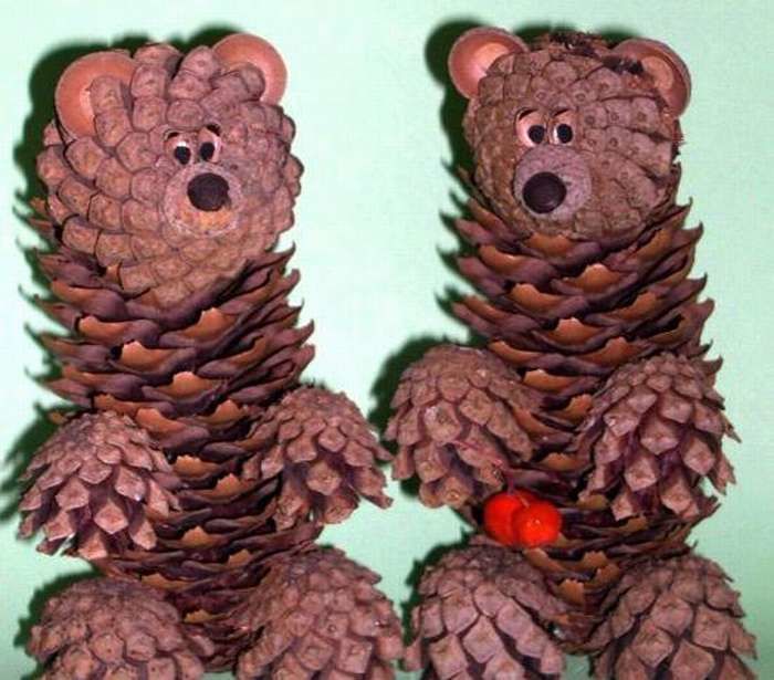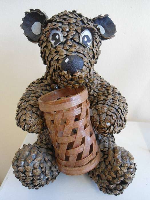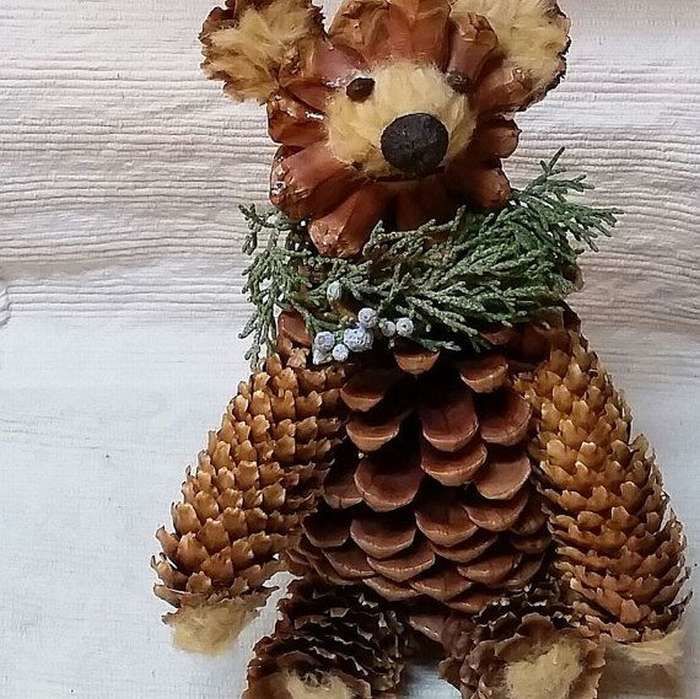 Мечката може да бъде направена и изцяло от 7 шишарки. Елементите се съединяват с лепило или пластилин.