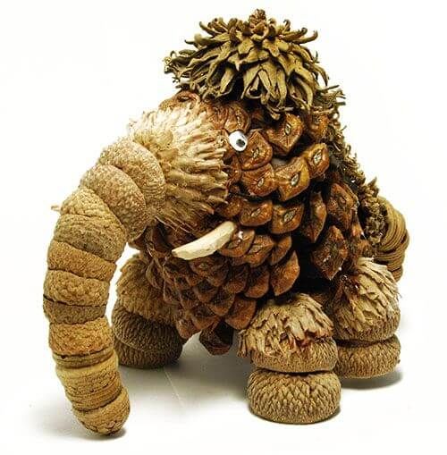 За тялото се използва смърчова шишарка, която се слепва с лапи, направени от дълги шишарки. Главата се прави, като се съединят две кръгли борови шишарки с върховете една към друга. Най-горните люспи се отрязват.