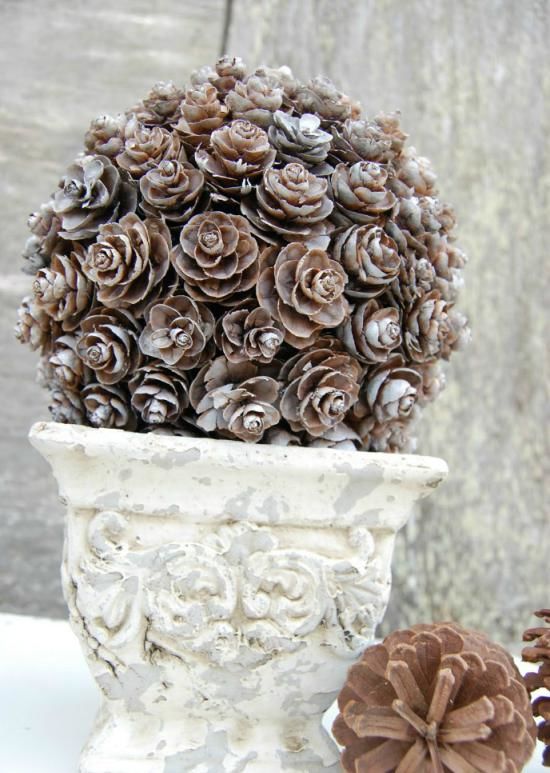 Ръчно изработени изделия от шишарки - създаване на топиари, декоративни кошници, цветя, топки и животни (116 снимки)