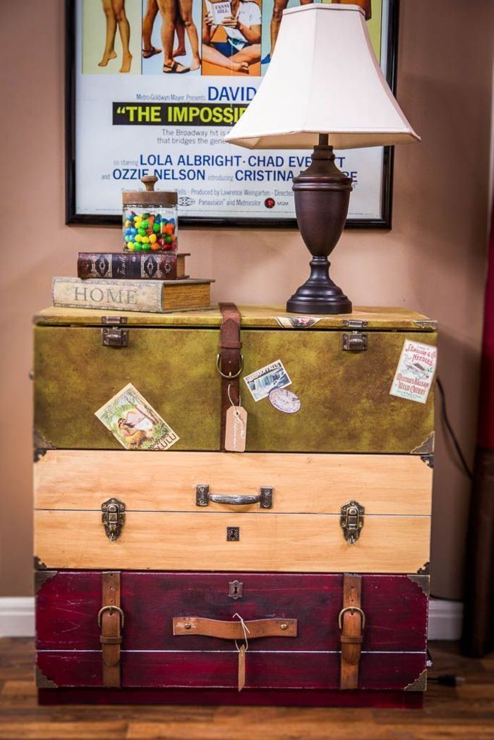 - Укрепете дъното с платформа с крачета, за да изглежда куфарът като мебел.