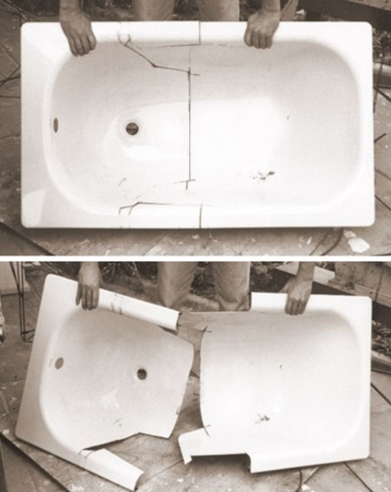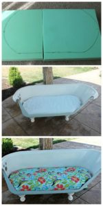- От метална вана отрежете предната стена с помощта на шлайф машина, като заоблите ръбовете.