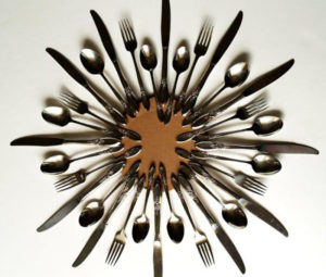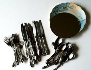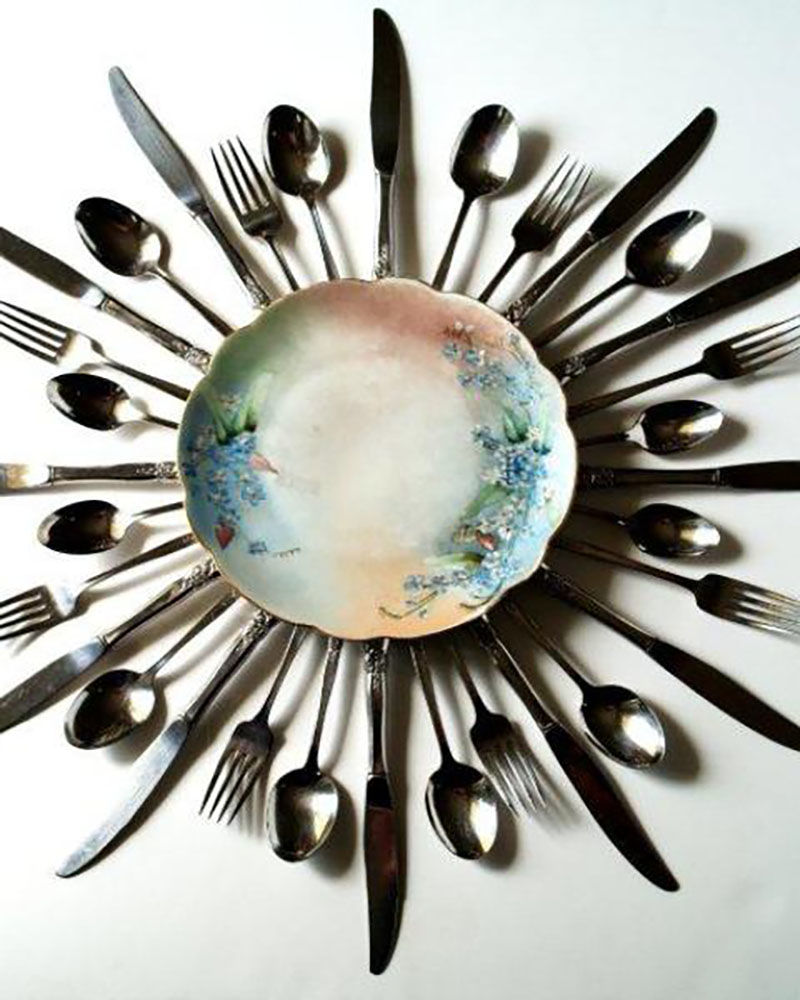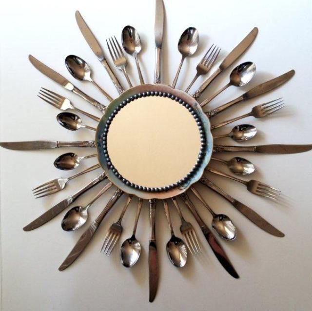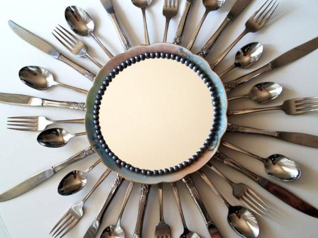 Рамкиране на огледало от прибори за хранене