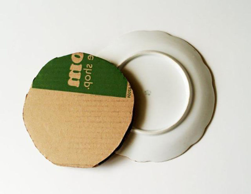- Изрежете кръг от картон с диаметър малко по-малък от този на чинията.