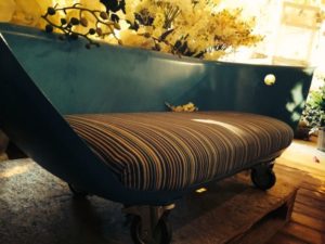 Диван и вана е странна комбинация. Но да си направите място за релаксация в провинцията от отдавна неизползвана вана е напълно възможно за вас.