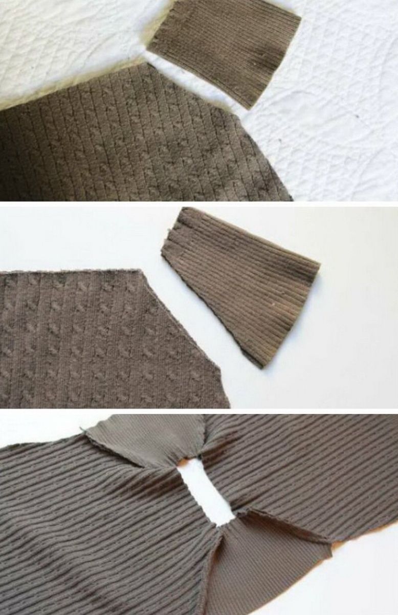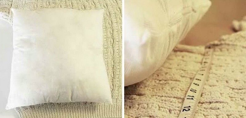 - Ако ширината на възглавницата съвпада с ширината на плетеното изделие, отрежете ръкава и всичко горе.